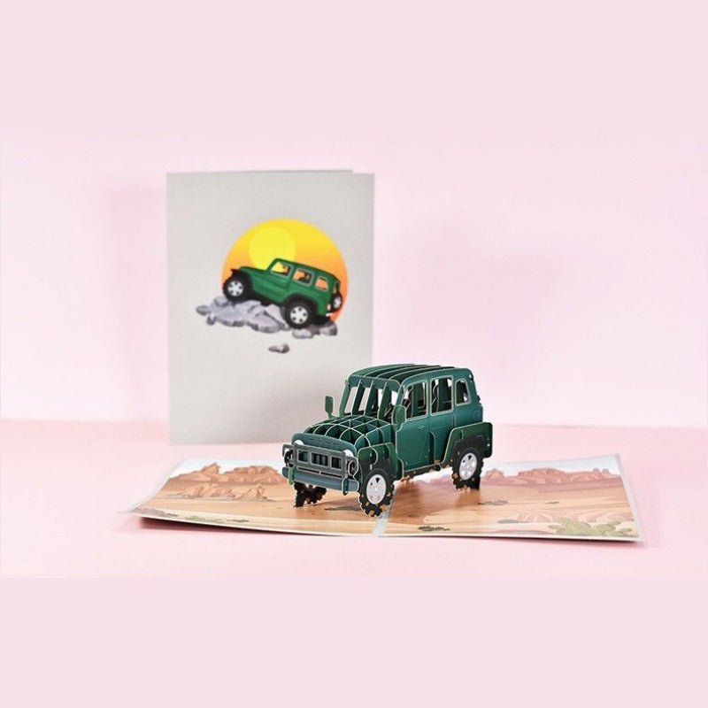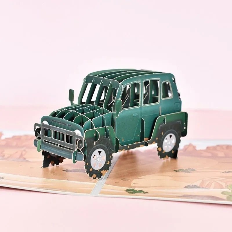 - Unique Design: Featuring a vintage off-road vehicle model, this pop-up card is full of adventure and nostalgia. Open the card to reveal a detailed 3D model of an off-road vehicle, taking you on a journey filled with challenges and freedom.