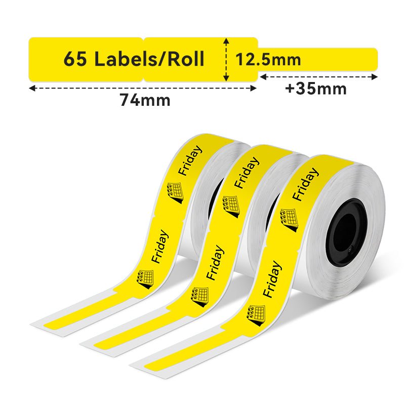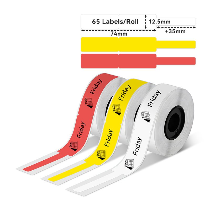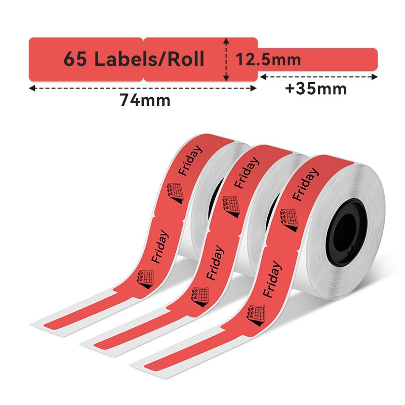 - Details: Größe ist 12,5 mm x 74 mm + 35 mm (Zoll ist 0,49 x 2,91 + 1,37), 65 Etiketten/Rolle, drei Rollen in einer Schachtel, Farben sind