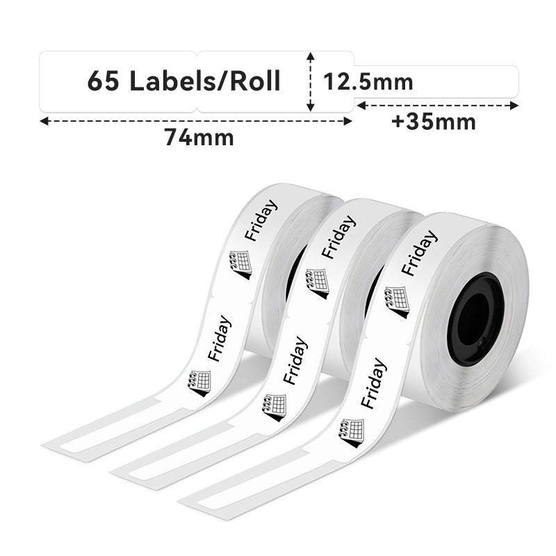 6/12/14/15mm thermal label, suitable for D30&D35&Q30&Q30S. Never worry that your stickers may fall off. Leave a 2 mm blank edge for easier tearing.