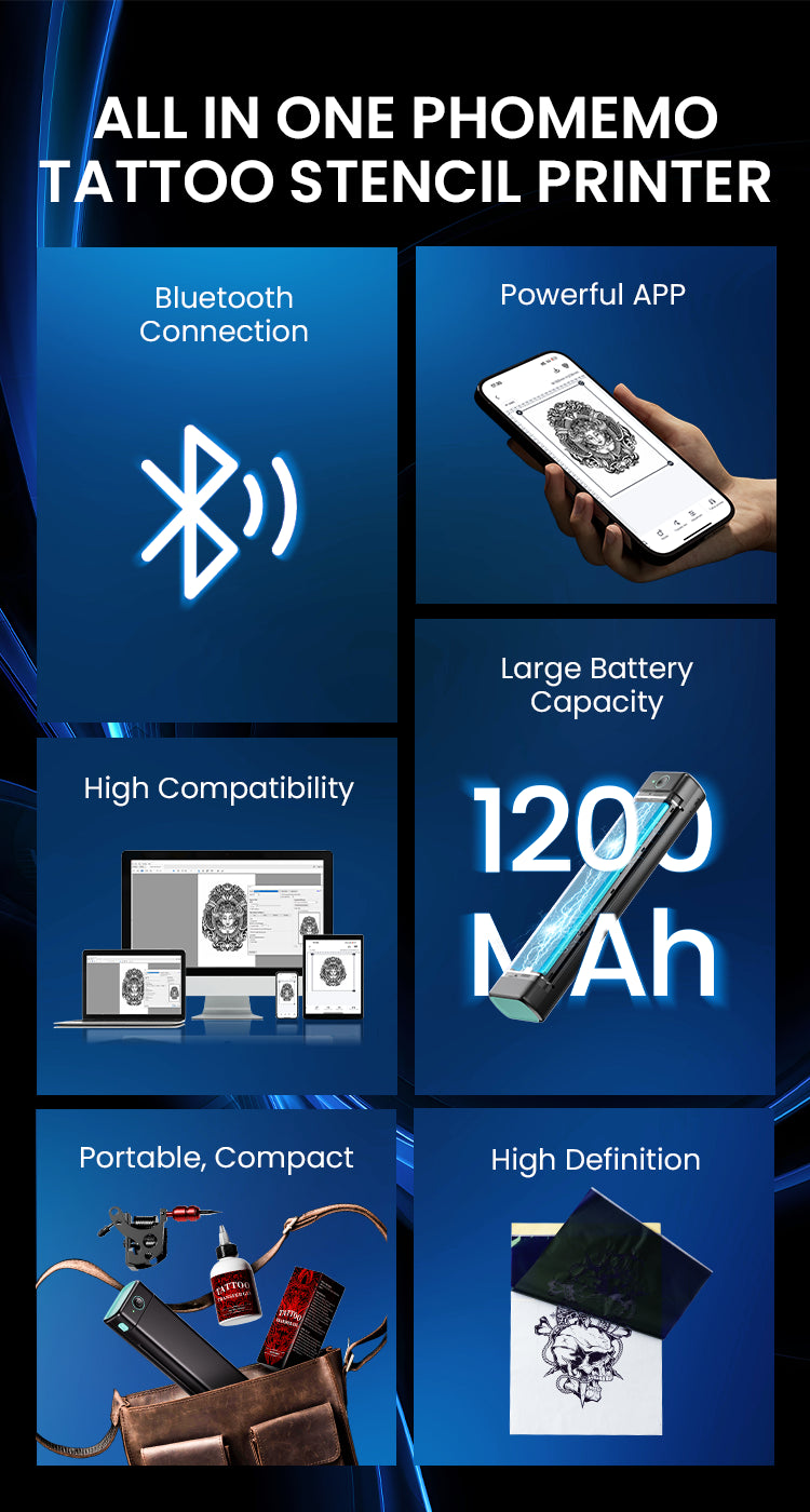 Für Künstler, die Prioritäten setzen Tragbarkeit, Präzision und problemlose Bedienung, Die Phomemo M08F Kabelloser Tattoo-Schablonendrucker ist eine erstklassige Wahl. Hier erfahren Sie, warum es in Studios und mobilen Workflows dominiert: