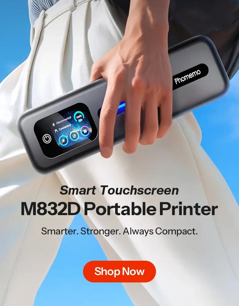 Impresora portátil térmica Phomemo M832D con pantalla táctil directa mejorada