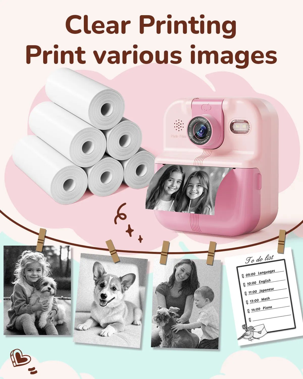 - Facile à utiliser : Suivez simplement la bonne direction lors du chargement du papier dans l'appareil photo pour une expérience fluide, permettant aux enfants de capturer et d'imprimer des moments sans effort.