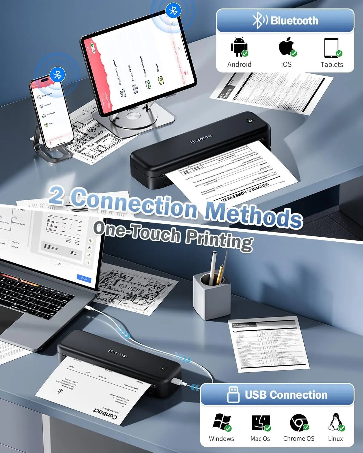 • Sans encre & Économies de coûts : Utilise la technologie d'impression thermique, éliminant les coûts d'encre et de toner tout en conservant des impressions de haute qualité à 300 dpi.
