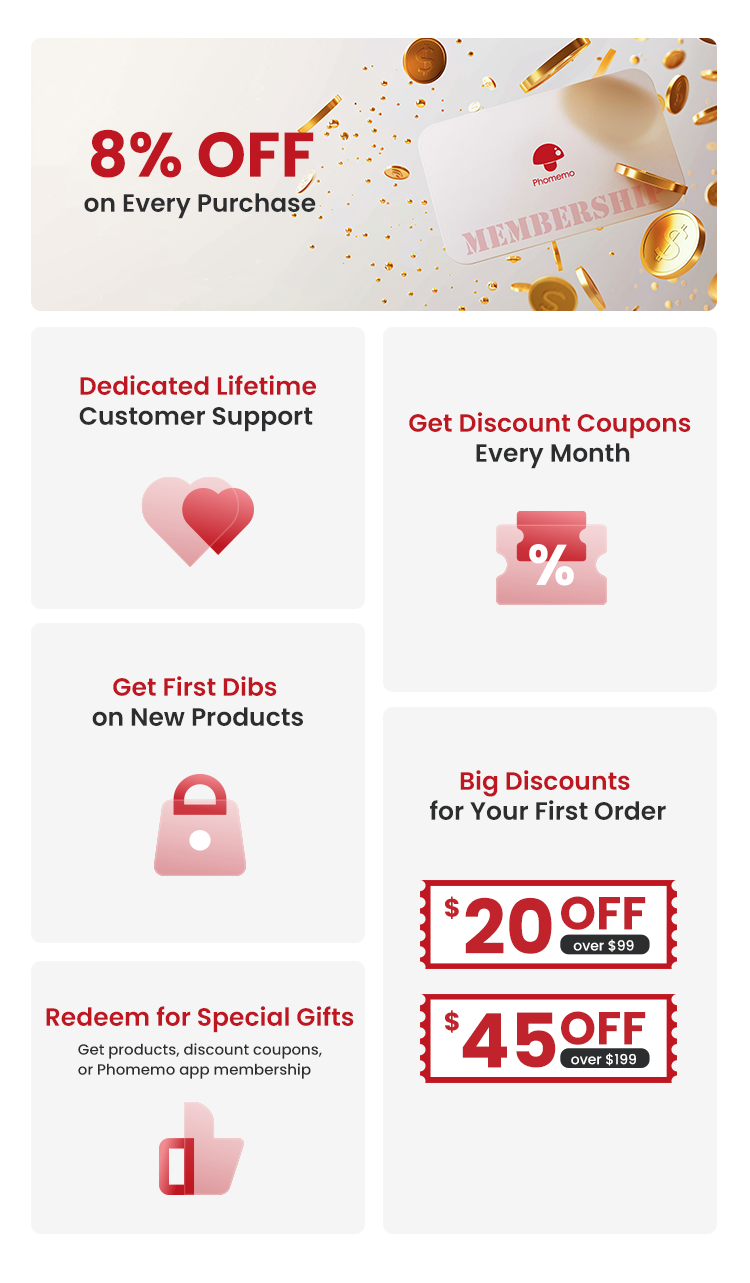 L'adhésion à Phomemo est notre programme de récompenses où les clients gagnent des points sur leurs achats chez Phomemo.comLes membres peuvent