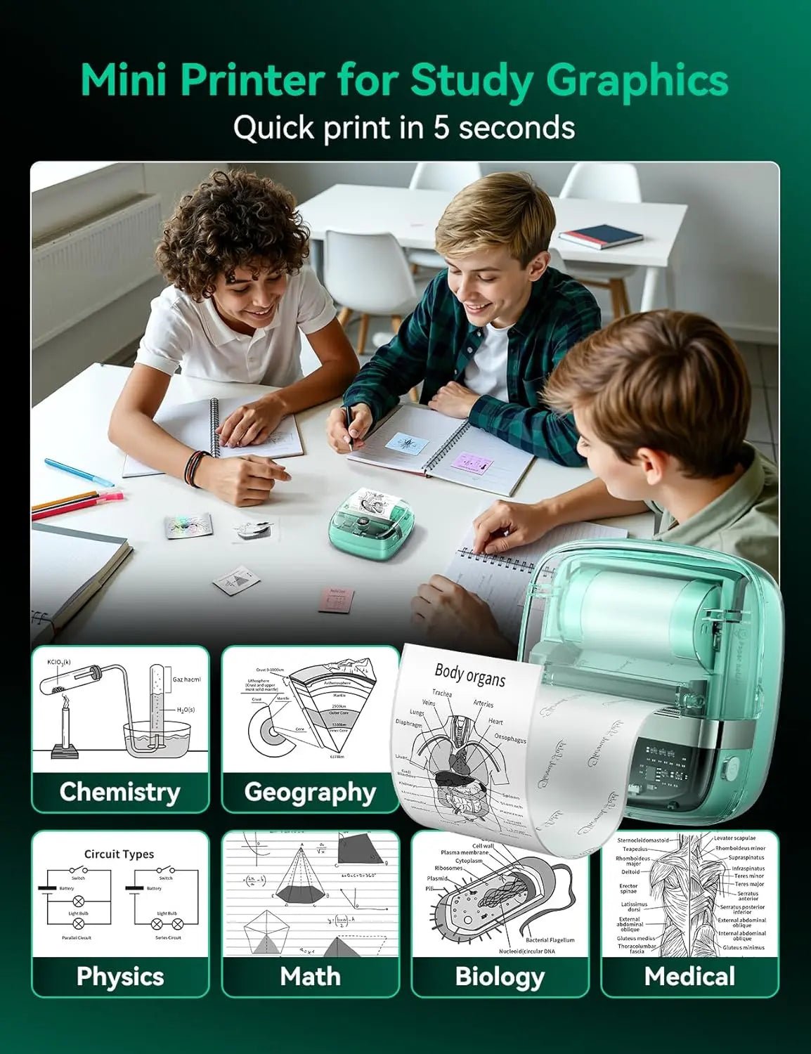 - For Notes & Study Graphics: Designed for students and educators to print study notes, flashcards, and diagrams for subjects like math, chemistry, physics, and anatomy.
