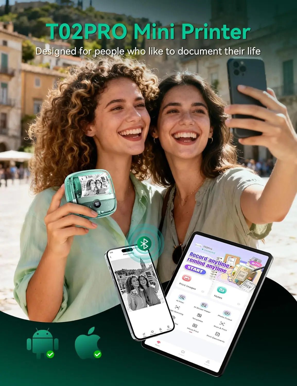 - Portable Bluetooth Printing: Weighing only 150g, this pocket-size printer connects to iOS and Android devices via Bluetooth using the Phomemo app.