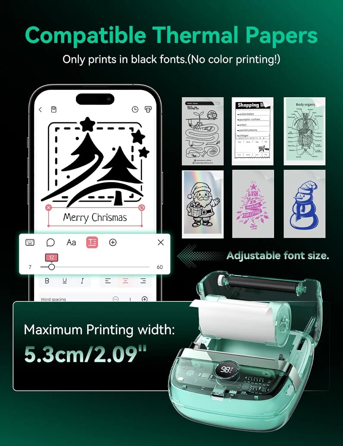 - Inkless Thermal Printing: Print labels, notes, images, and text using inkless thermal technology. No ink or toner required—clean, simple, and efficient.