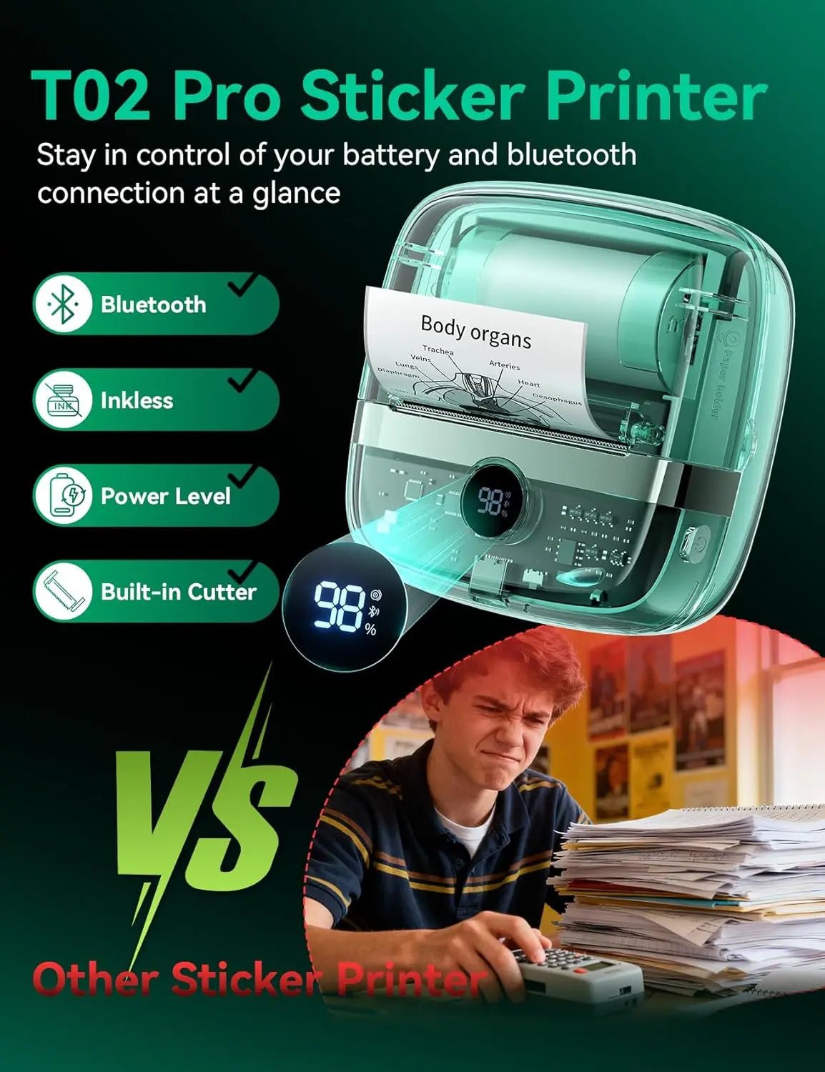 - Transparent Design with Status Dial: The transparent body lets you see the printing process in real time, while the status dial shows battery level and Bluetooth connection at a glance.