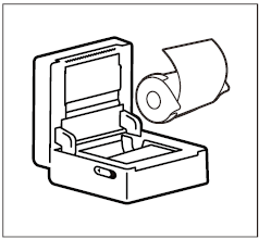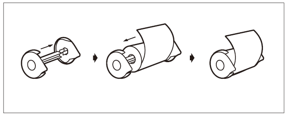 3. Inserire il rotolo di carta nella stampante e raddrizzare la carta come mostrato nell'immagine sopra.