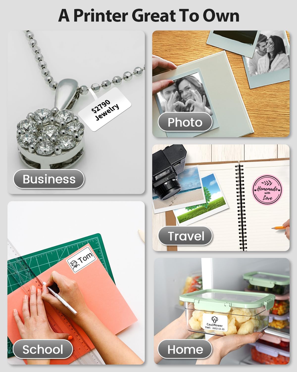 • Funzione creativa multipla &e Modelli: l'app "print master" per l'etichettatrice offre varie funzionalità e modelli, scegli tra oltre 1000 simboli, oltre 60 cornici e una varietà di caratteri, crea facilmente vari adesivi per etichette di design dall'app con testo, codice QR, codice a barre, loghi, immagini, ora e bordi, ecc., inoltre, l'app supporta l'importazione di Excel, la scansione, l'OCR e il riconoscimento vocale. Goditi la praticità, il divertimento, la semplicità e risparmia tempo con la macchina etichettatrice.