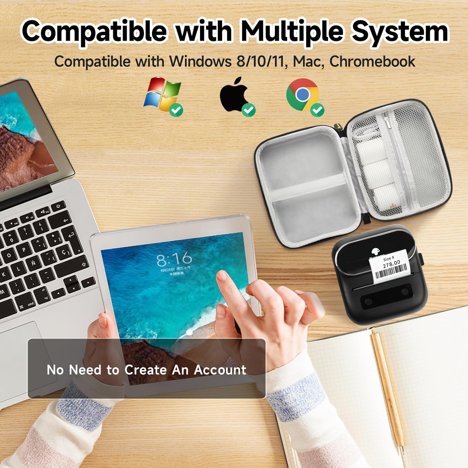 red コスト削減red 従来のラベル プリンターとは異なります。 - 多様な互換性: M220 ラベル メーカーは、Android、iOS、iPad、Windows 10/11、Mac と互換性があり、家庭、オフィス、中小企業などのさまざまな環境でのモバイルとデスクトップの両方の使用に適しています。