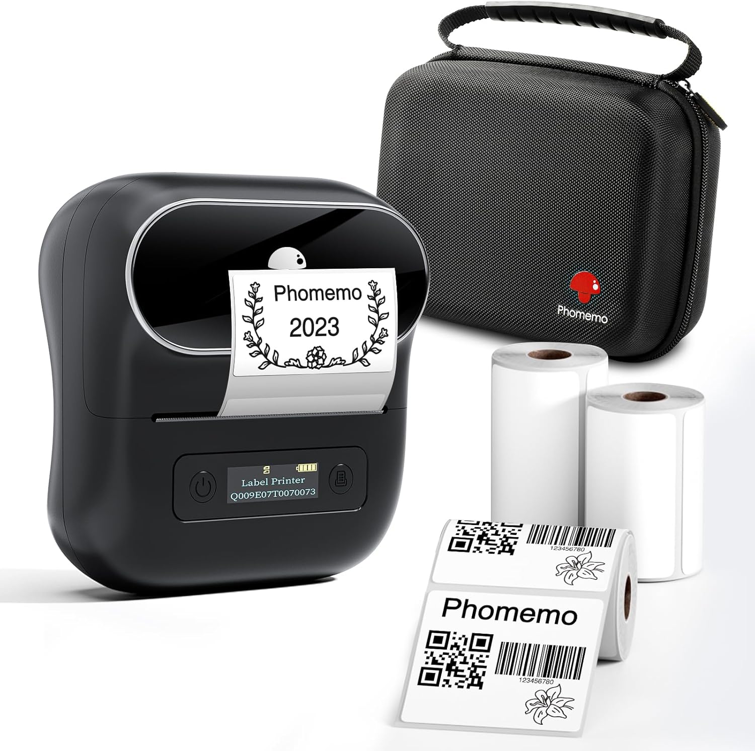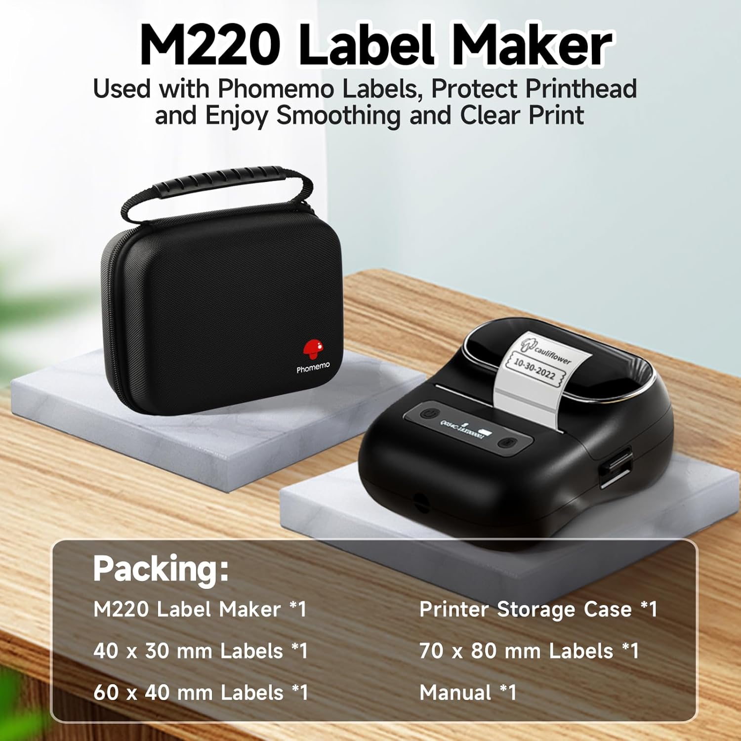 Phomemo M220 ポータブル Blue tooth サーマルラベルメーカー - 80mm ミニプリンター、ラベル3パックとケース付き、Android/iOS対応、家庭やオフィスでの使用に最適