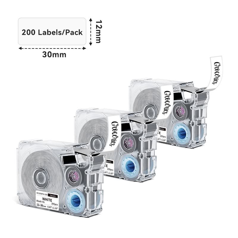 • Details: The sizes are 12x30mm, (inch is 0.47"*1.18"), 200 label tapes/pack, there are three packs, and the colors are Black on White.