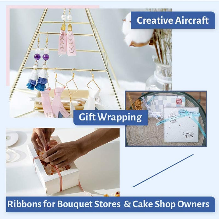 - Fita de etiqueta de fita de cetim: Brasagem 100% polietileno. Macio, resistente e plissado para uma caixa de presente decorativa "faça você mesmo".