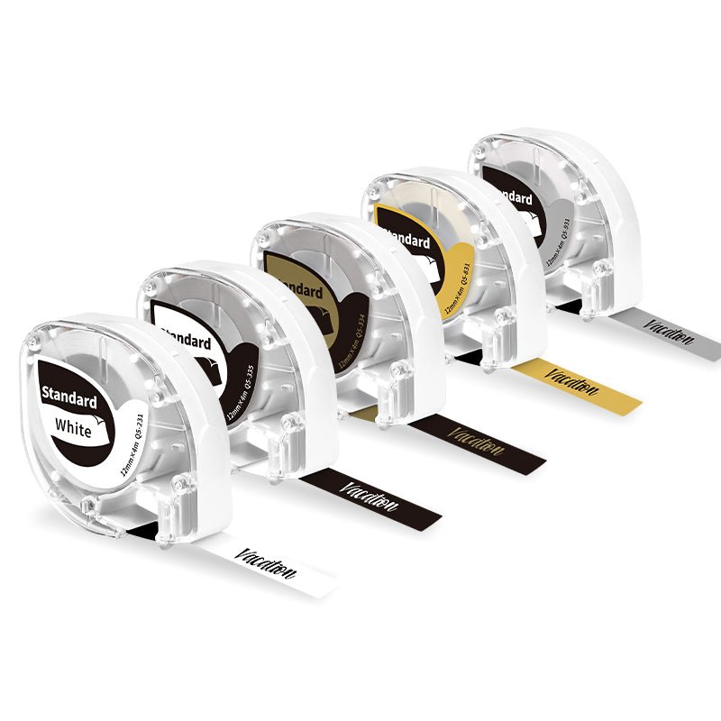 - Standard Label Tape: Colorfast, scratch-resistant, waterproof, and very durable.