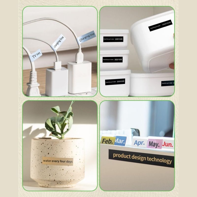 - Inkless Printing: The label tapes are thermal transfer printing labels, no need to replace ink cartridges, easy to operate and environmentally friendly.