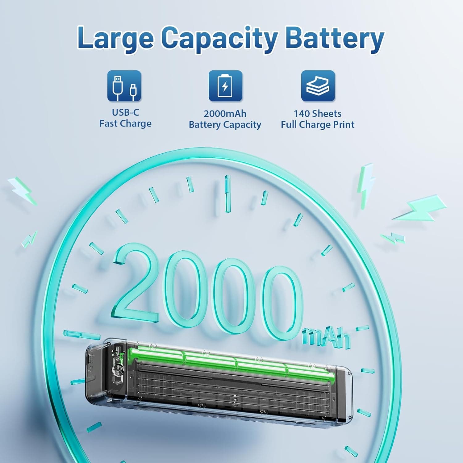 Ultra-high Printing Efficiency: Up to 120 pages of continuous printing after charging, with a printing speed of 12mm/s